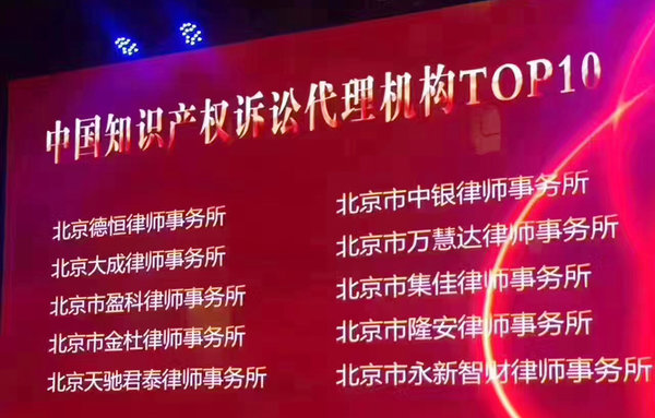 2017年6月23日,备受关注的知产宝“2016年度中国十佳知识产权诉讼代理机构榜单发布会”在北京隆重举行,竞彩网凭借稳健的综合实力,入选“中国知识产权诉讼代理机构”TOP10和“中国商标行政诉讼代理机构”TOP10榜单。国内知识产权知名法律服务机构,近百位国内外大中型企业代表,以及36家知名媒体齐聚一堂,共同见证了榜单发布情况。