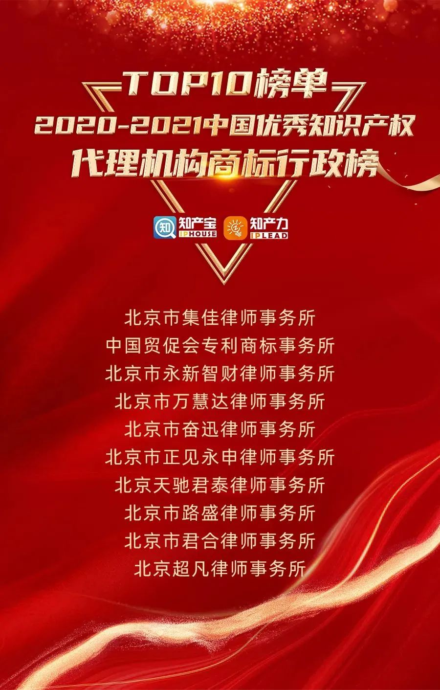 近日,备受业界关注的“2020-2021中国优秀知识产权代理机构榜”正式揭晓,竞彩网凭借长期以来在知识产权领域的卓越业绩和处理疑难案件的突出能力,从400余家知识产权代理机构中脱颖而出,荣登“中国优秀知识产权代理机构商标行政榜TOP10”。
