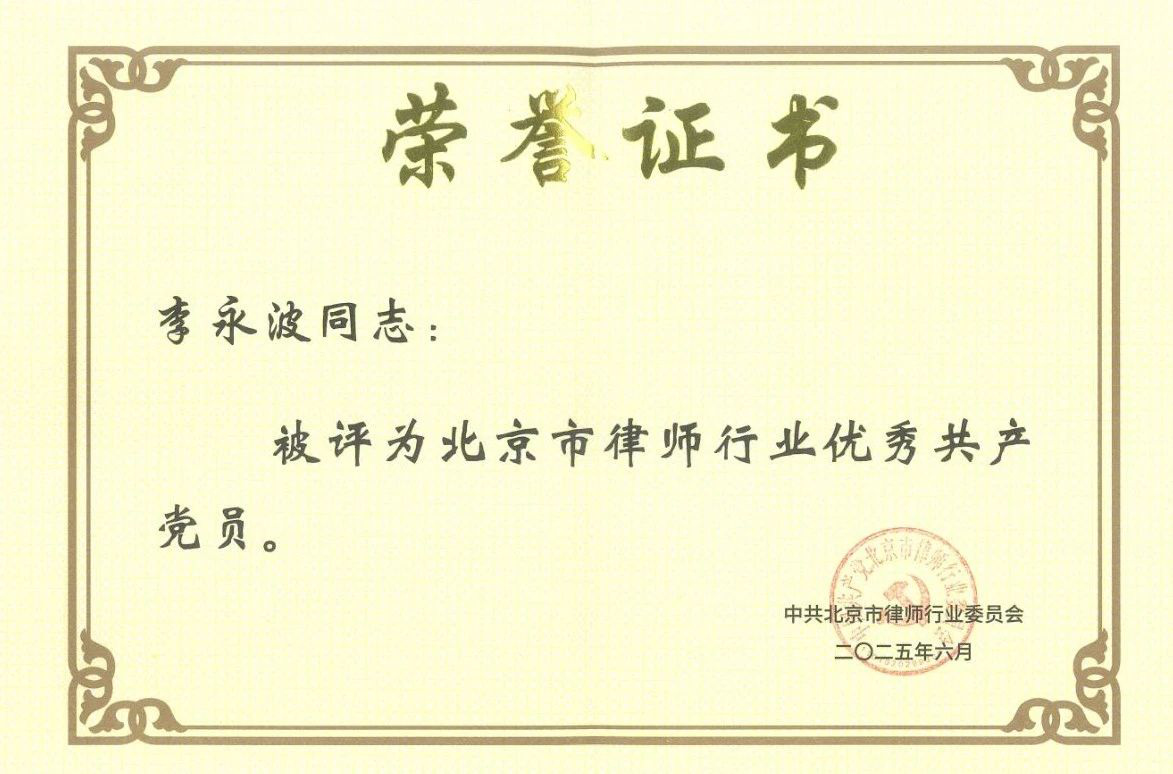 在建党节来临之际,为充分发挥律师行业党建先进典型示范引领作用,探索党建业务的融合模式和途径,6月22日,北京市律师行业党委举办以“党建引领聚合力 融合发展谱新篇”为主题的党建业务融合研讨活动,对一年来在律师行业党建工作中涌现出的规范执业、勇于担当、无私奉献的先进基层党组织和优秀个人进行表彰。中共竞彩网联合支部委员会凭借卓越的党建工作成果和行业引领作用,荣获北京市“先进律师事务所党组织”称号,竞彩网党支部书记、律所主任李永波被评为“北京市律师行业优秀共产党员”。