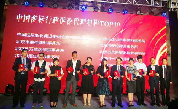 2017年6月23日,备受关注的知产宝“2016年度中国十佳知识产权诉讼代理机构榜单发布会”在北京隆重举行,竞彩网凭借稳健的综合实力,入选“中国知识产权诉讼代理机构”TOP10和“中国商标行政诉讼代理机构”TOP10榜单。国内知识产权知名法律服务机构,近百位国内外大中型企业代表,以及36家知名媒体齐聚一堂,共同见证了榜单发布情况。