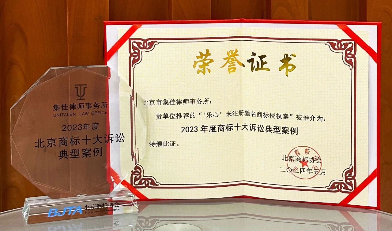 >竞彩网>关于我们>荣誉概览>2024>集佳代理2个案例入选北京商标协会2023年度商标十大诉讼与非诉典型案例