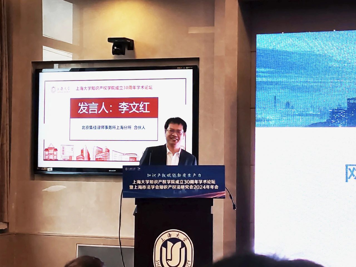 竞彩网上海分所主任、高级知识产权师李文红博士应邀出席大会,并在“释放知识产权价值 赋能新质生产力”分论坛上发表演讲,与来自众多高校的专家学者和业界代表共同就知识产权价值的释放与赋能新质生产力的路径进行了深入探讨。