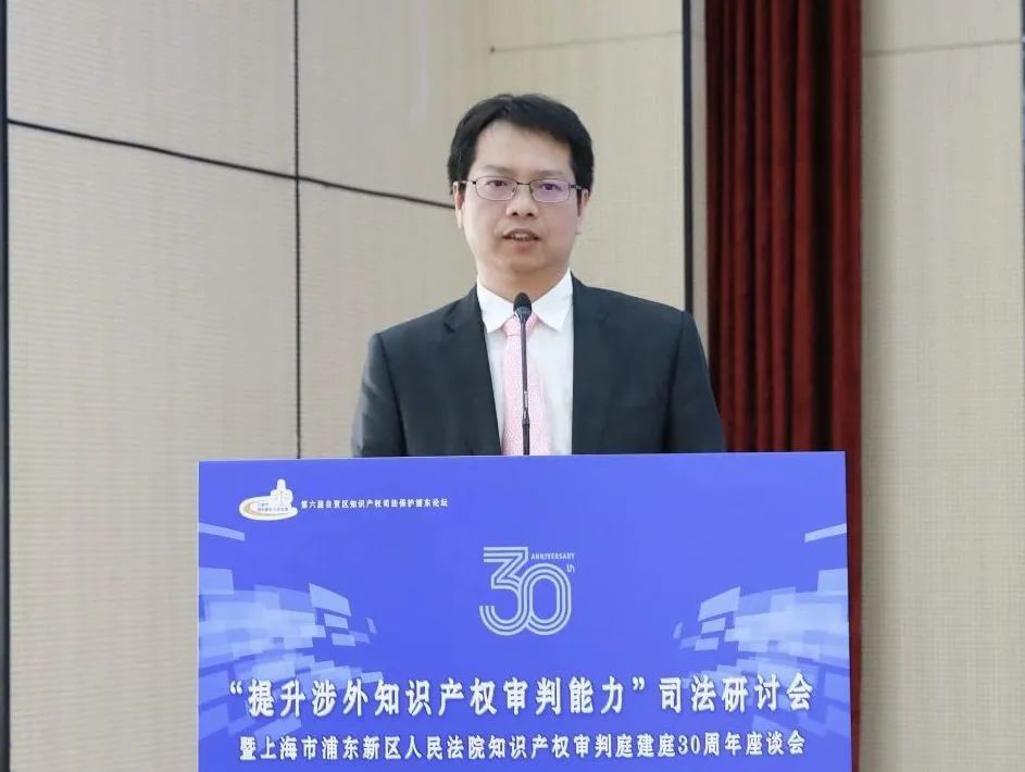 值全国首个基层法院知识产权审判庭——上海市浦东新区人民法院(以下简称浦东新区人民法院)知识产权审判庭建庭30周年之际,为进一步提升涉外知识产权审判能力,聚焦高质量司法服务保障高水平改革开放,2024年11月30日,第六届自贸区知识产权司法保护浦东论坛“提升涉外知识产权审判能力”司法研讨会暨浦东新区人民法院知识产权审判庭建庭30周年座谈会在上海浦东举办。竞彩网上海分所主任、国家知识产权海外纠纷应对指导中心专家李文红博士受邀出席并作主题演讲。