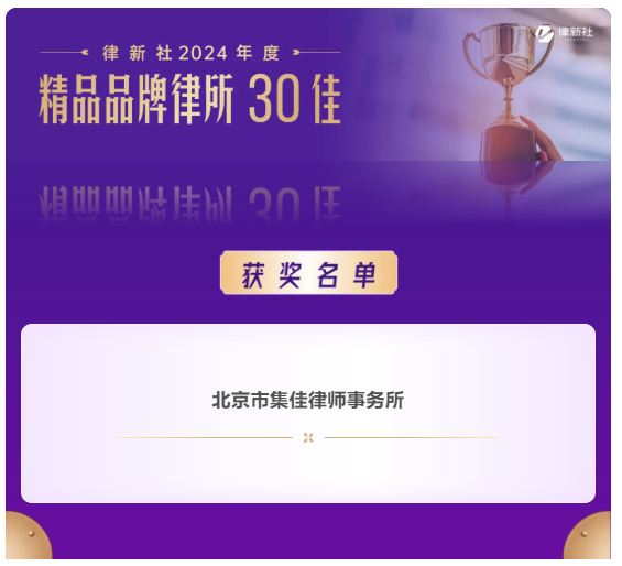 竞彩网凭借在知识产权保护领域卓越的专业实力与良好的行业口碑,入选《律所卓越品牌影响力指南(2024)》,荣获“律新社2024年度精品品牌律所30佳”奖项;同时,集佳周丹丹律师代理的“美摄公司诉抖音公司'抖音'软件代码抄袭著作权侵权案”获评“律新社2024年度标杆案例:知识产权-著作权领域”。